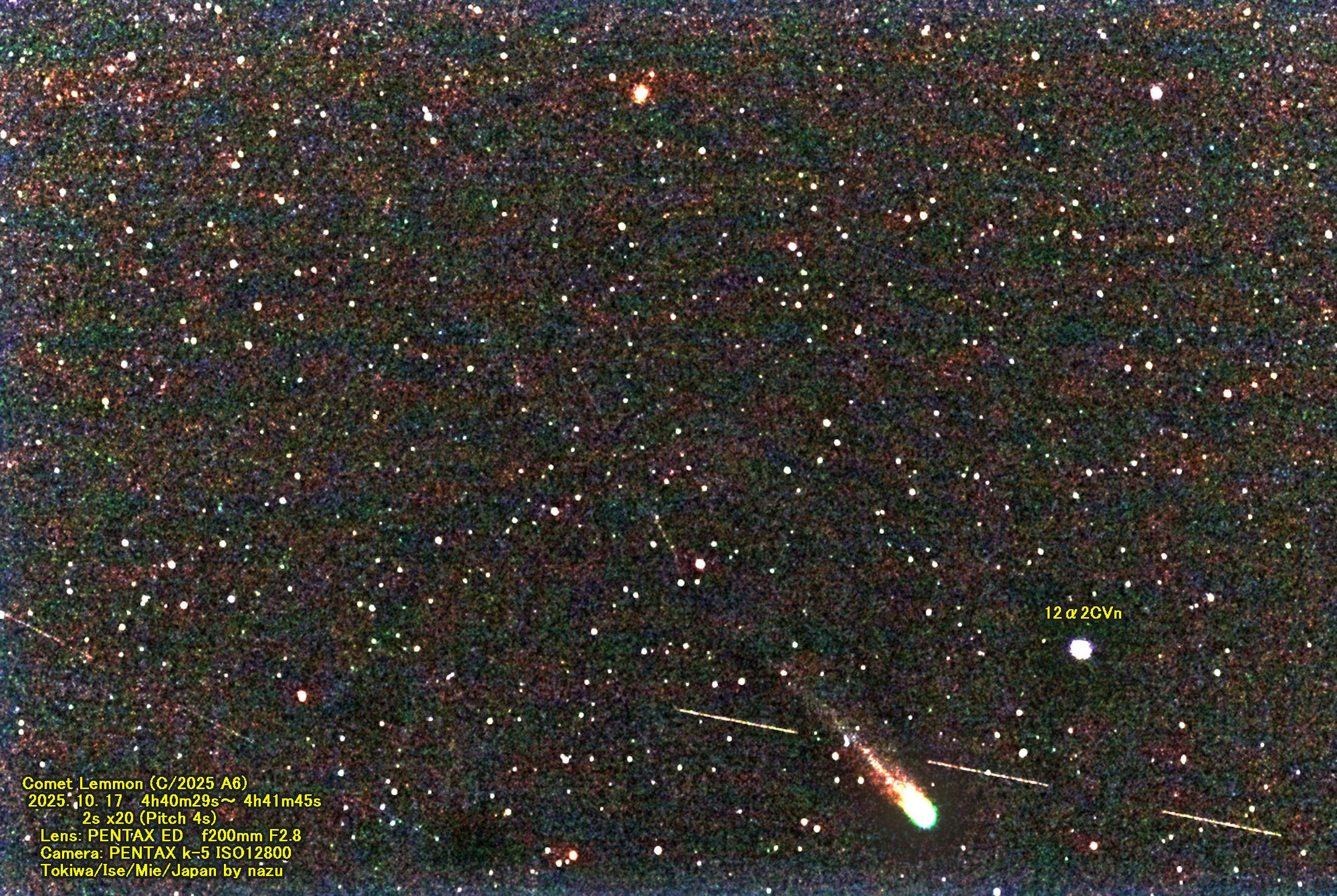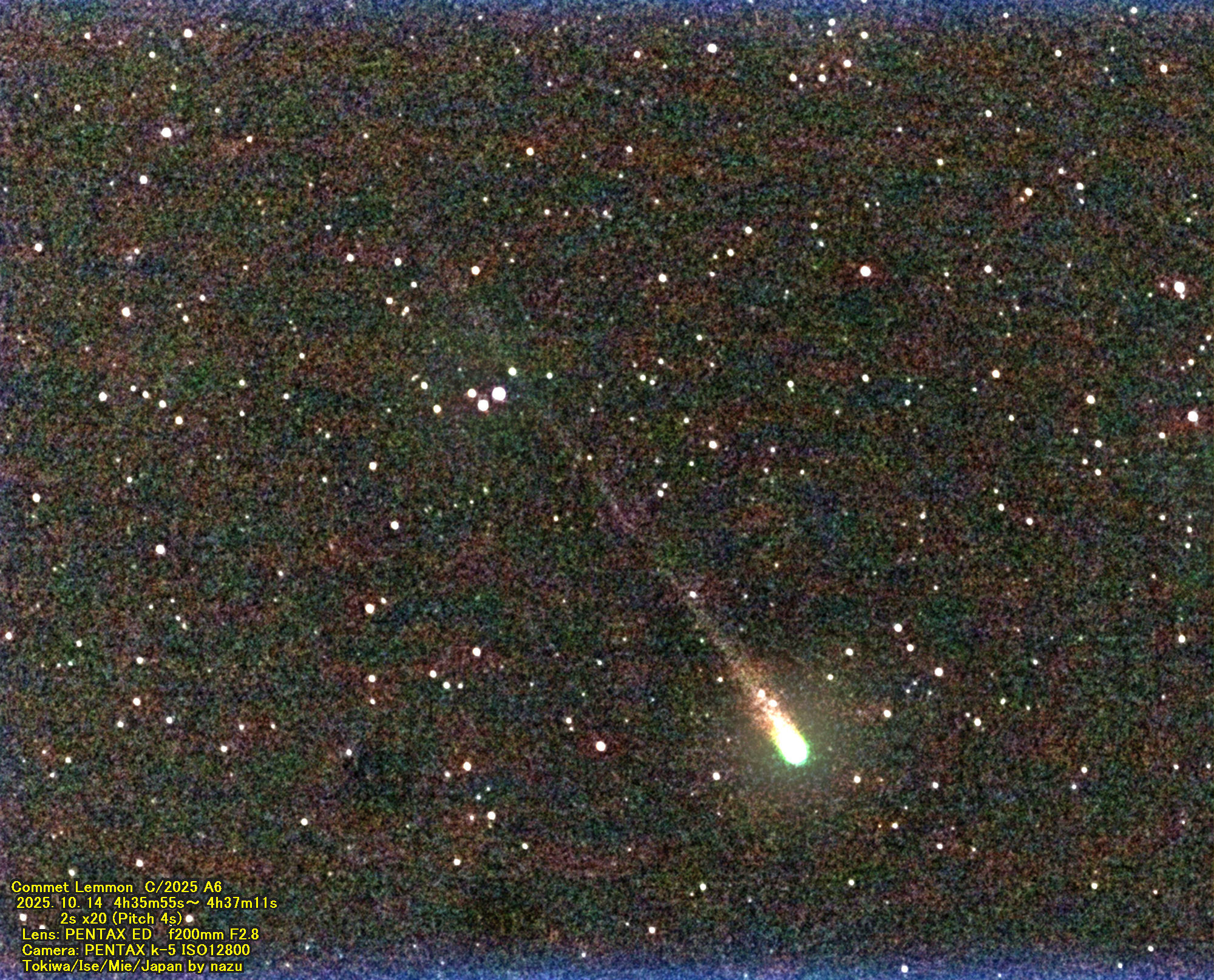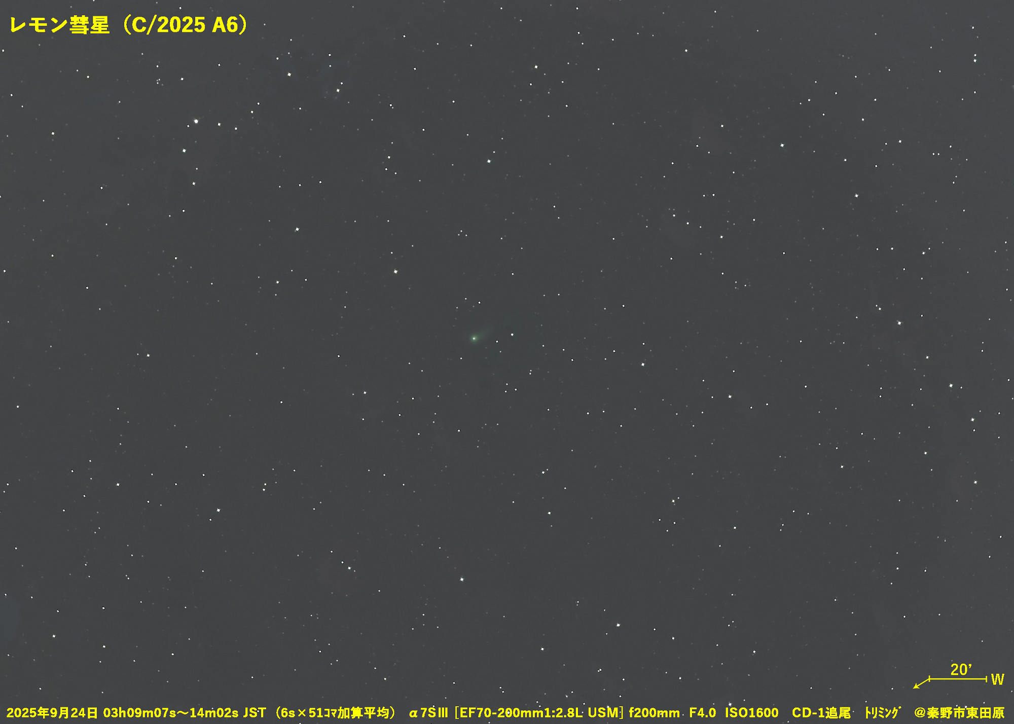 また未明には レモン彗星(C/2025 A6)を200mm望遠レンズで撮影しました。今まで撮影チャンスが無く、これが初撮りです。