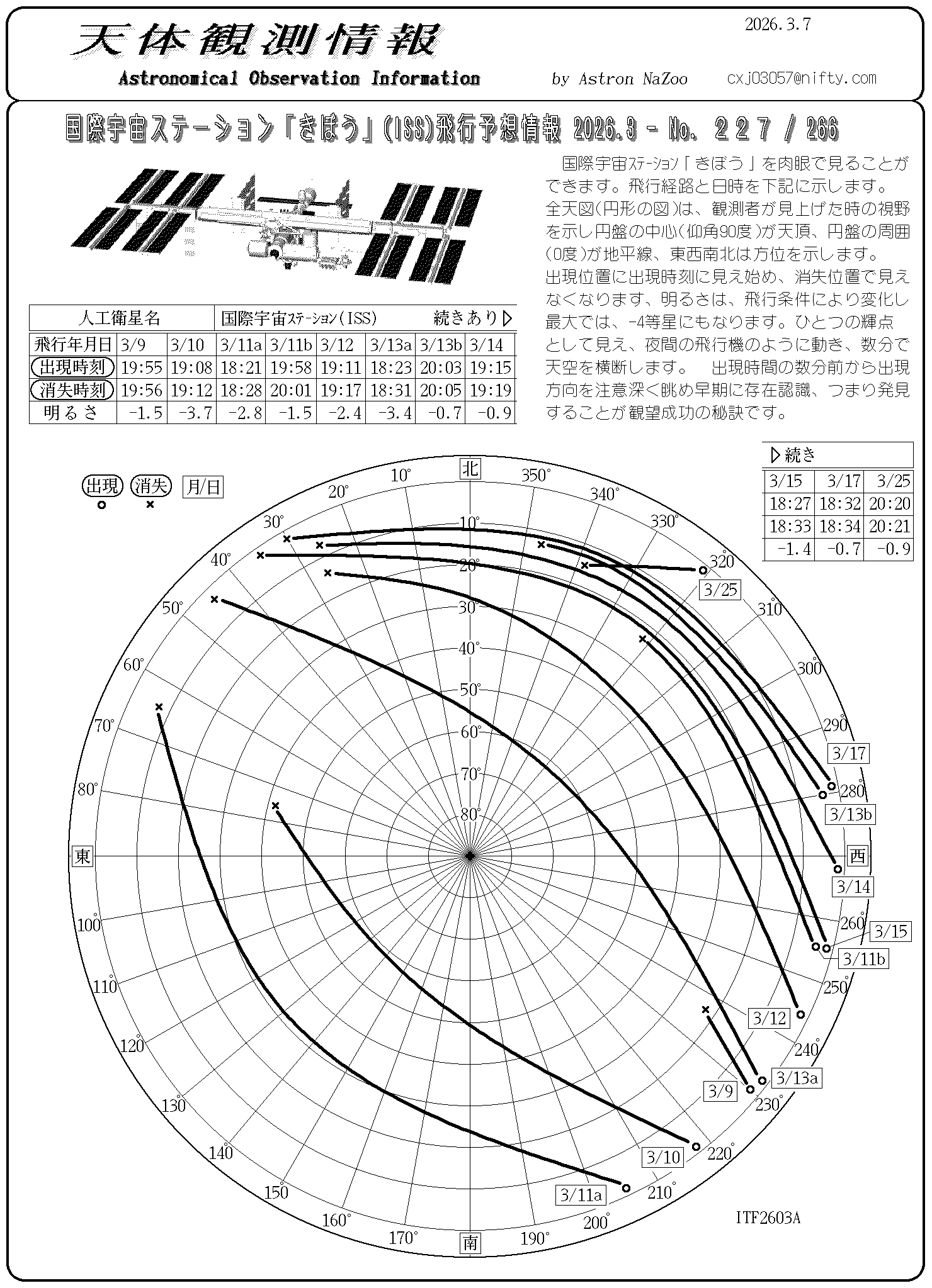 国際宇宙ステーション飛行予想情報20260307ISE_No_227