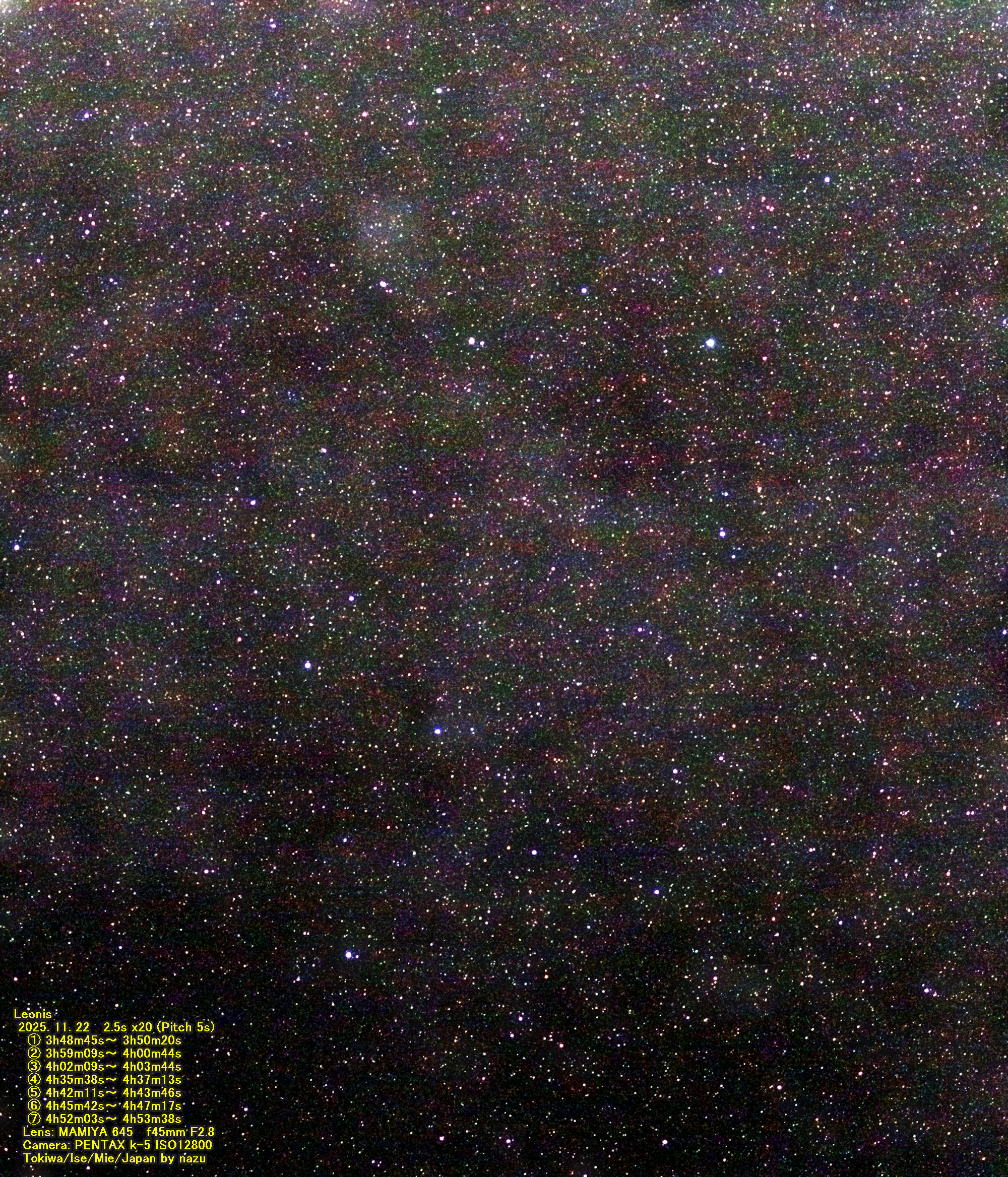 144枚撮ってました。確認できる流星は3個。期待した
